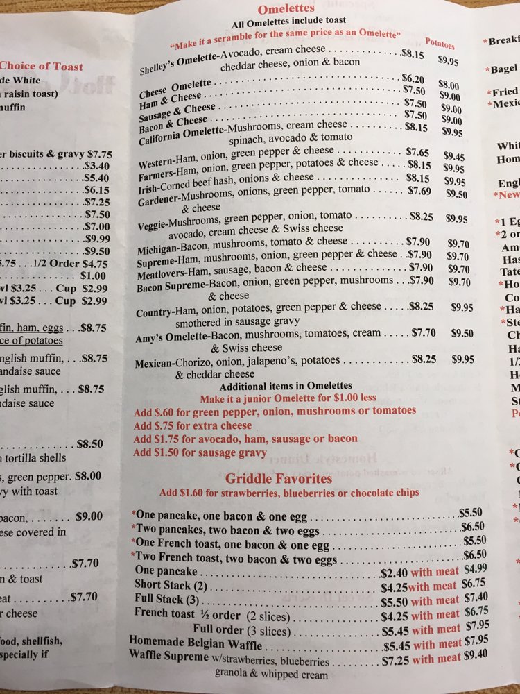 “ BEST OMELETTE I've ever had. My go to omelette place in Grand Rapids! I always get the Shelley's omelette, it has perfect ratio of avocado and cream cheese. Which I had never seen on an omelette before I stepped foot in here. Now I look for it anywhere else I go, I don't find it!! To be honest I've tried to recreate just the avocado and cream cheese ratio but it just cannot be done. You NEED the original to satisfy that craving. I now live farther away and sometimes make the drive up just for this place. ”