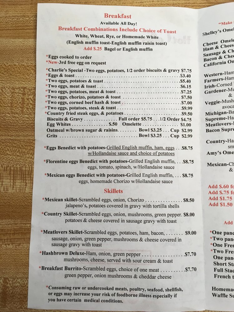 “ I've been going to Shelley's for a couple of years now for breakfast. I've always enjoyed whatever I've ordered there . I typically order just standard breakfast fare. But what I've always liked about them is that although they have the same traditional foods that you might order at any greasy spoon, they are not greasy. It's nice to have eggs and hash browns that aren't swimming in fat. My wife ordered the bagel sandwich. And the bagel was delicious. It was very moist inside. Almost like a New York style boiled bagel. But we asked the waitress and she said they are just regular bagels. We forgot to ask the brand name. But I would like to know. Don't let the appearance of the outside keep you from coming to this little place. It's actually very nice and clean inside. The only reason I didn't give this place a five rating? Is because it is virtually inaccessible to handicapped people. If you are in a wheelchair or a walker, you'll have no problems getting up to the doorway. But the doorway is not very wide and not many wheelchairs would be able to get through it. And even if you could, the aileways are narrow and there would be no place to pull a wheelchair up to a table without blocking off the entire aisle. And it would be virtually impossible to get a wheelchair into there bathroom. Is there tables fixed against the wall right next to the doorway that you wouldn't be able to swing around to get in. If the door is even wide enough to get a wheelchair in. ”